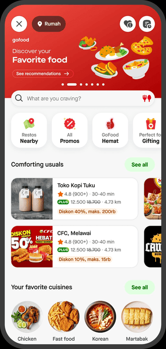 Meals made more affordable wherever you are, always with “ONGKIR MURAAAH". GoFood keeps expanding, creating more opportunities for merchants to offer a wide variety of food and drinks.